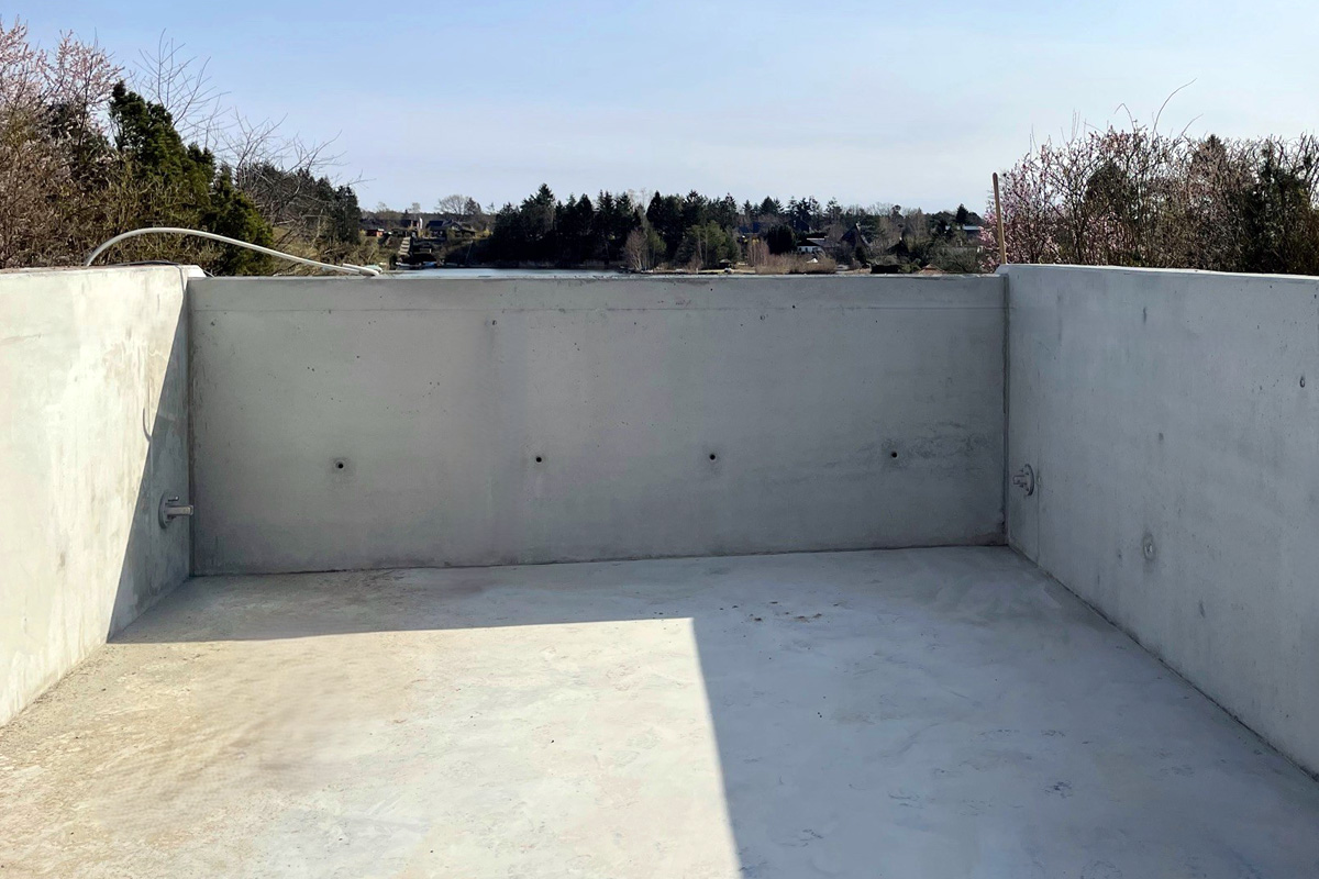 Wasserundurchlässige Beton Pools können mit unterschiedlichen Beschichtungen erstellt werden. In diesem Fall wird nach dem Ausschalen die klare, puristische Sichtbetonoberfläche sichtbar - ganz ohne Fliesen oder Folien. Anschlüsse für Technik, Einlaufdüsen oder Beleuchtung sind bereits vorgesehen.