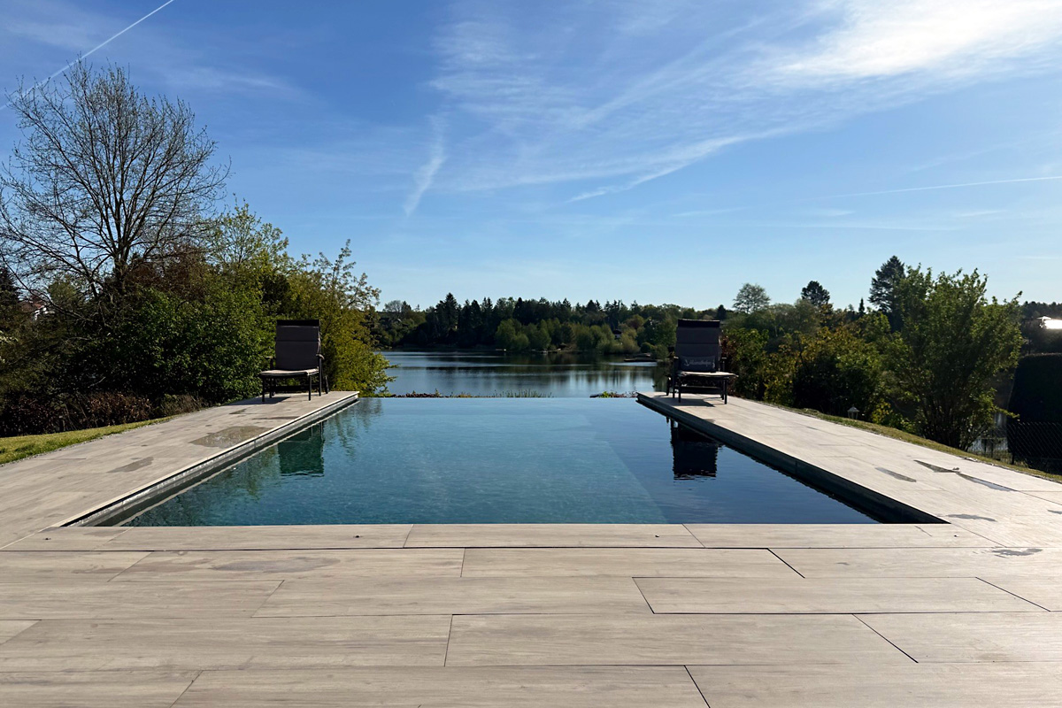Der fertige WU-Betonpool integriert sich harmonisch in die Umgebung. Eine formschöne Pooloptik und die klaren Flächen machen diesen Pool zu einem echten Designobjekt mit zeitloser Ästhetik - bereit für die technische Ausstattung und spätere Wasserbefüllung.